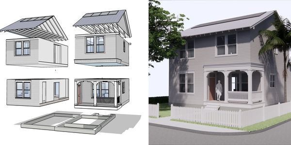 We have developed several prototypes for modular residential construction. Shown here is a 3-bedroom house with a footprint of only 30 ft x 30 ft.