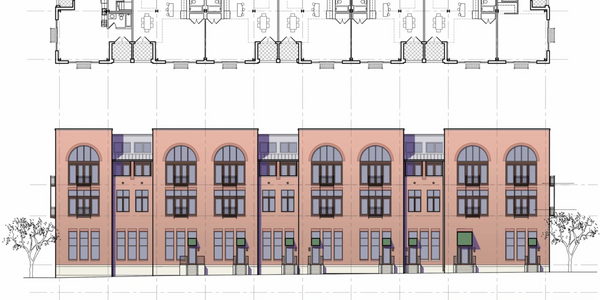 Townhouses come in a variety of types and sizes. This example shows a three-story "tuckunder" type (i.e., parking behind on the ground level of the unit).