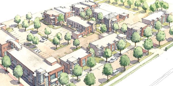 Urban Arts provides site design studies for the public and private sector for potential development sites. These can be in the form of quick hand-draw sketches, or more developed designs such as the one shown here. These illustrations are invaluable when seeking investor and public support.